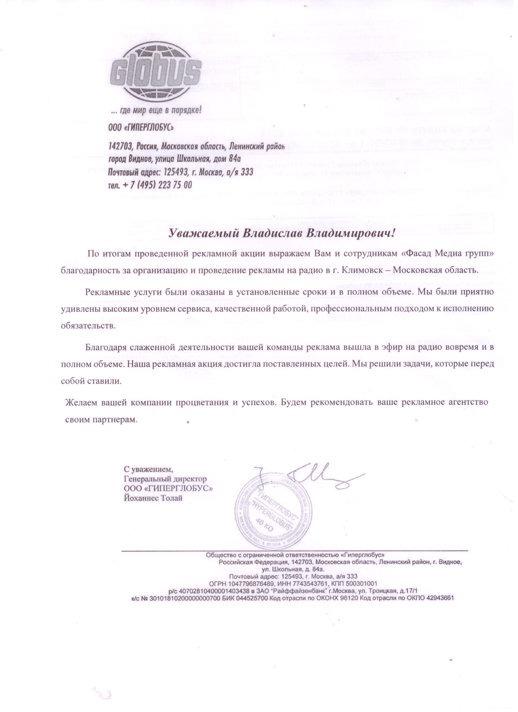 Для получения профессиональной консультации по размещению рекламы на радио обращайтесь к специалистам РА «Фасад Медиа Групп». Будем рады помочь.